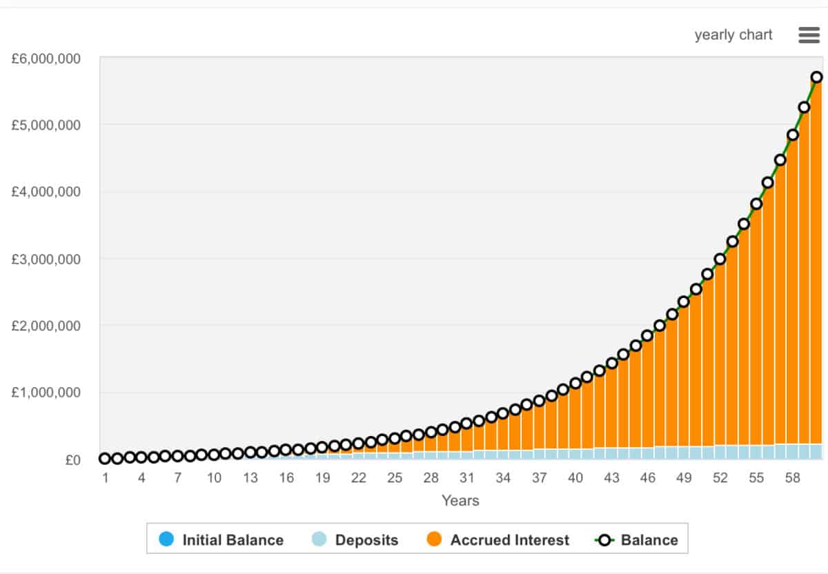So, after 60 years of compounding at 8% annually — a very achievable figure based on historic market performance — the SIPP would be worth £5.7m.