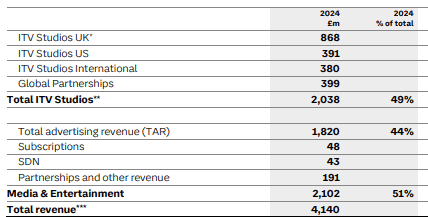 But if it can get things right, thereâs huge potential as the group has a foot in two camps. In 2024, ITV generated 51% of revenue from advertising and 49% from making programmes. The global content market is estimated to be worth $233bn. And the amount spent on UK advertising is over £40bn a year. Next year, this could increase significantly due to the Fifa World Cup.