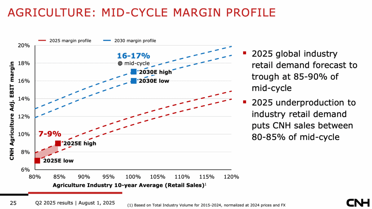 The stock Iâm looking at is CNH Industrial (NYSE:CNH). Like Deere in 2012, itâs a farm equipment manufacturer thatâs trading at a discount as crop prices have fallen.