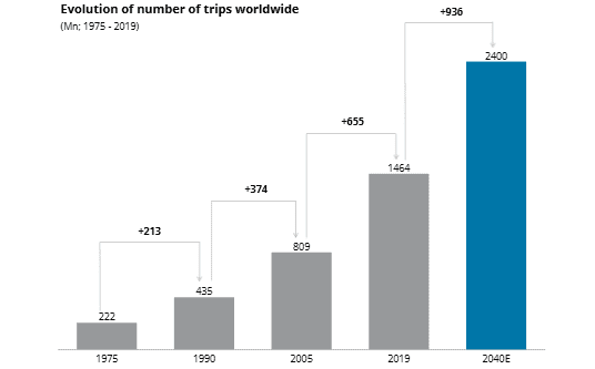 According to Deloitte, the number of outbound trips worldwide will continue to increase, reaching 2.4bn per year by 2040. This will be driven by rising middle classes across Asia Pacific, the Middle East, and Africa.