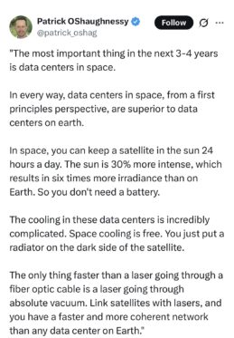 However, it may need fresh capital for space-based data centres. These are being proposed as a much more energy-efficient solution to data centres on Earth.
