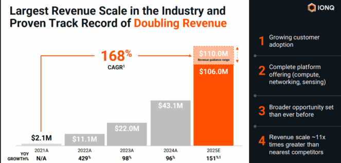In 2025, IonQ’s revenue is expected to jump more than 150% to around $108m. Then another 78% to nearly $200m, and potentially $1bn+ by 2030.