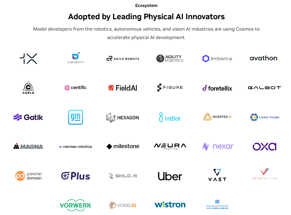 Take the company’s Cosmos platform, for example. It’s purpose-built for physical AI, enabling leading developers to use Nvidia’s software to accelerate the development of self-driving cars and robots. The list of customers speaks for itself.