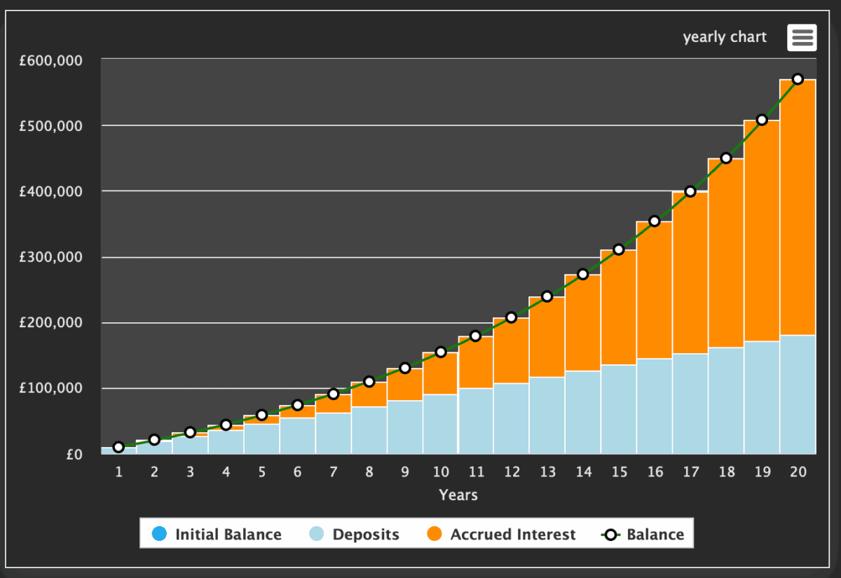 As the below graph shows us, it would take just over 15 years for £750 of monthly contributions and a 10% annualised return to reach £324,000.