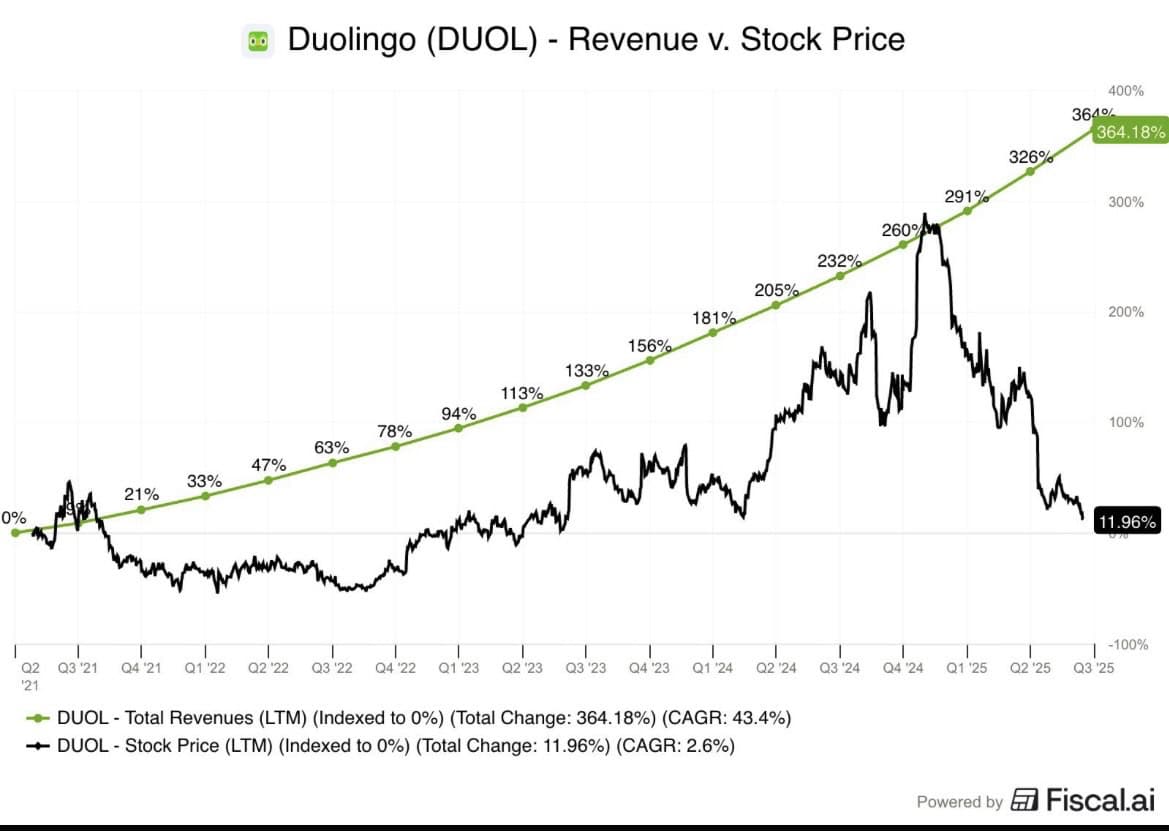 Duolingo is back at its IPO price despite growing revenue nearly four times and the number of paid subscribers almost five times since 2021. Even CNBC’s Jim Cramer, who doesn’t rate Duolingo’s prospects, now thinks the stock is “oversold“.