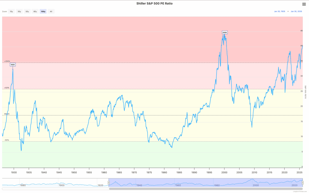 Adjusting for cyclicality, the only time the S&P 500 has been more expensive than it is right now was in 2000. Right before the dotcom crash saw tech stocks plunge.
