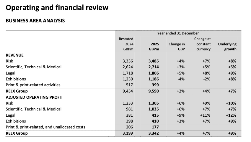 RELX’s results for 2025 were solid. For the year: