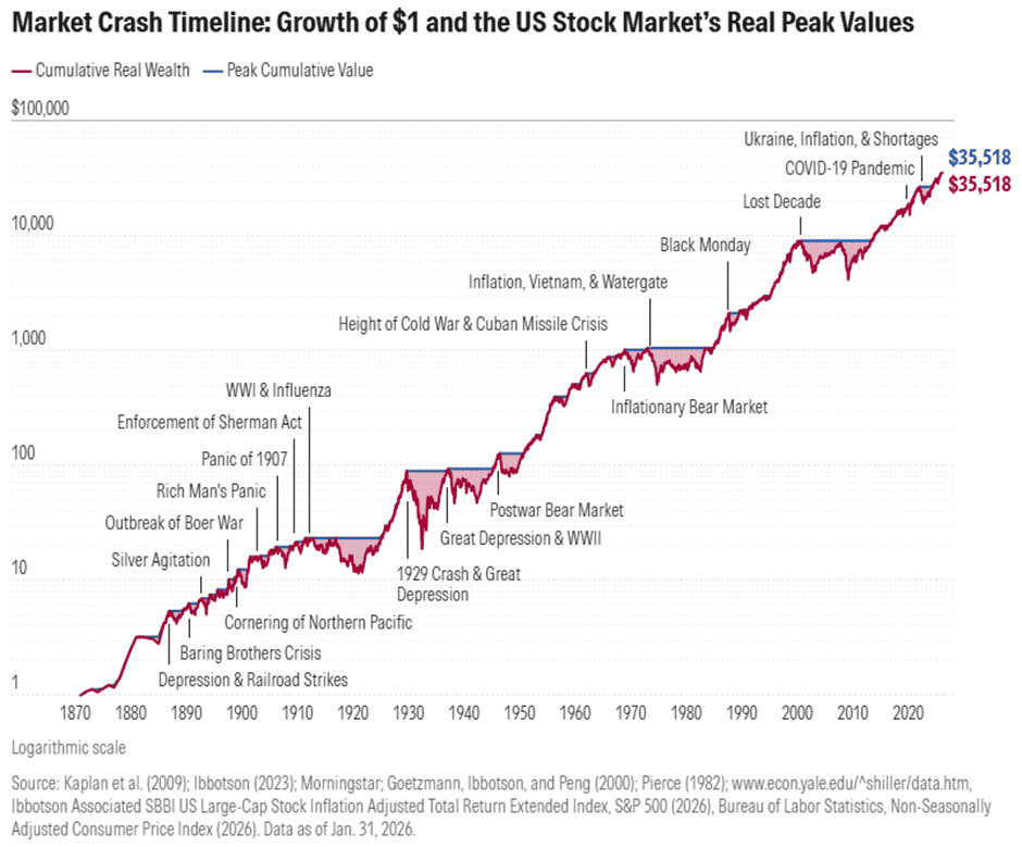 Another lesson of history is that even after the most severe of crashes, the market will eventually recover. It might take a decade or more â as with the Great Depression and the bursting of the dotcom bubble â but taking a long-term view is likely to yield better results than trying to time the market.