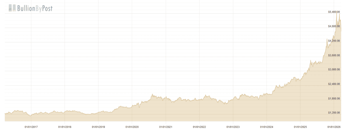 From $1,148 per ounce in early 2017, gold has skyrocketed over the past few years. As I write, it’s above $4,650, even after falling more than 10% recently. Meanwhile, silver has more than doubled in the past year.
