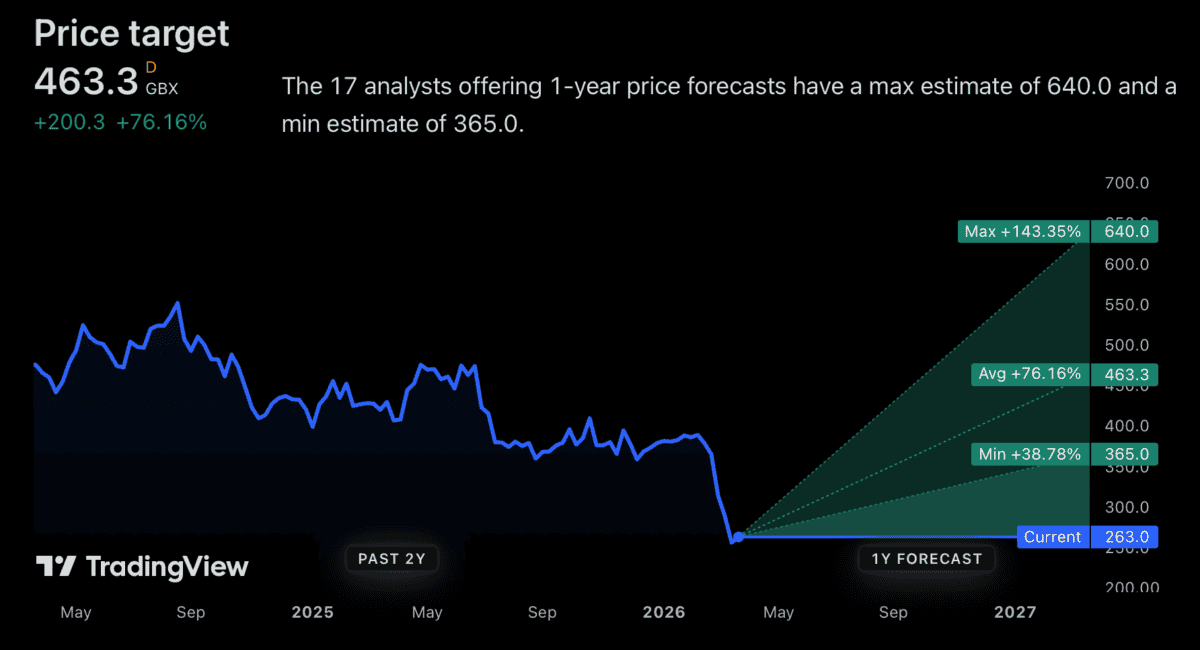No FTSE 100 stock has a bigger gap from its current level to its average price target. So itâs fair to say the company is the analyst favourite.
