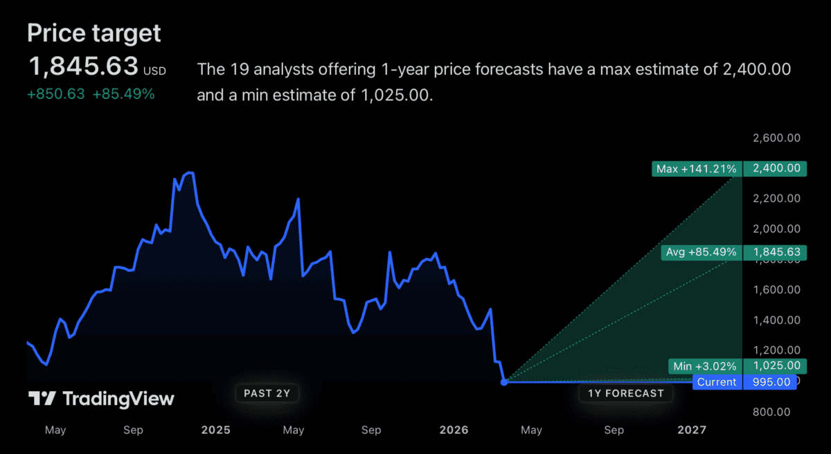 The average analyst price target is 85% above the stockâs current level. Thatâs the highest of any S&P 500 company.