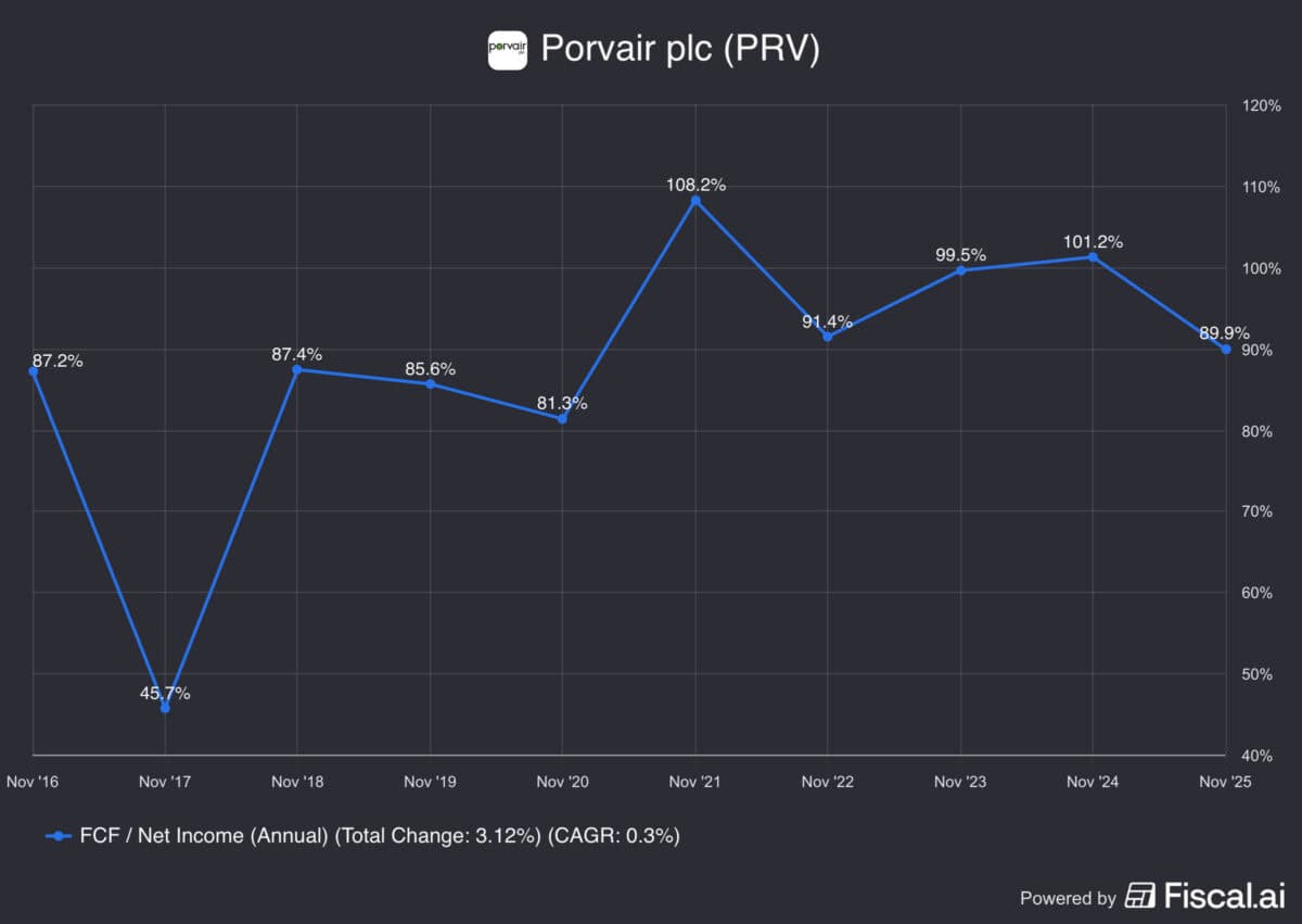The firm also has excellent cash conversion metrics. Over the last 10 years, it’s consistently turned over 75% of its net income into free cash.