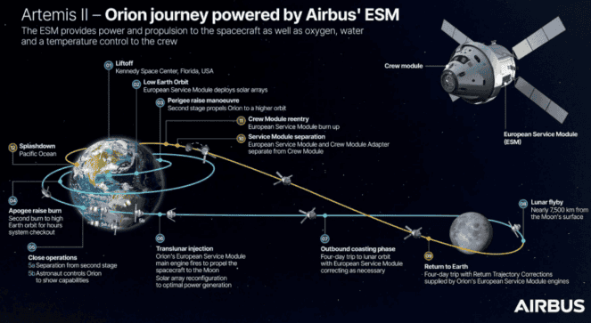 Airbus built the European Service Module for NASAâs Artemis programme, providing power and life support for the Orion spacecraft heading to the Moon.